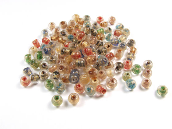 Glasperlen, Lampwork mit Goldflitter, 5 mm, bunte Mischung